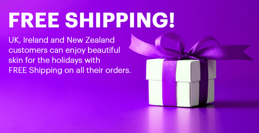 UK, Ireland and New Zealand customers can enjoy beautiful skin for the holidays with FREE Shipping on all their orders.